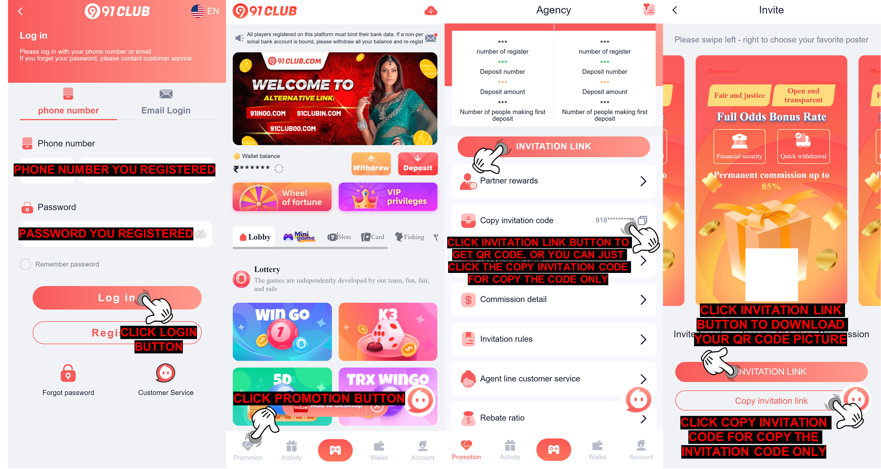 • Login to 91CLUB ID Account